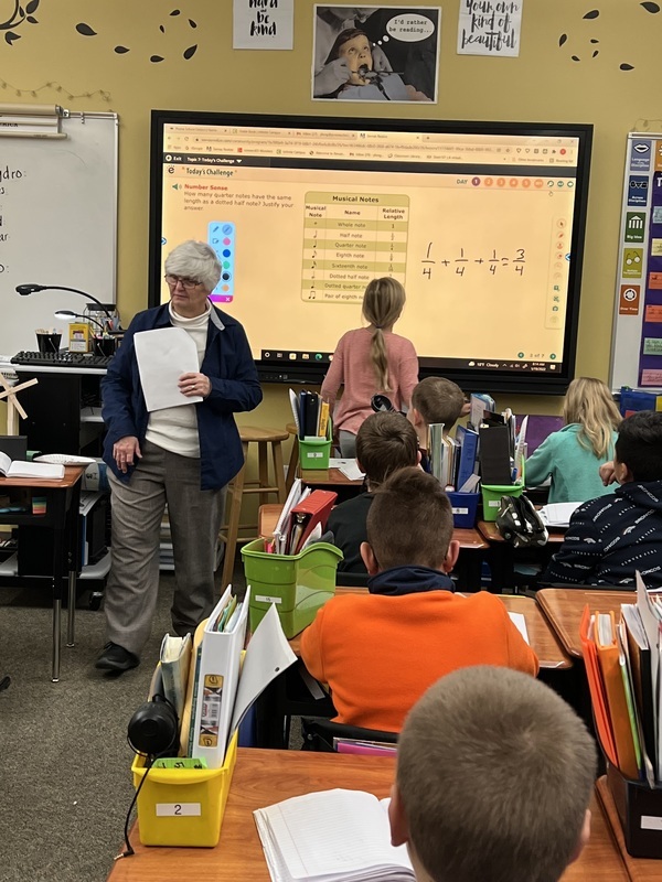 Today we had the wonderful opportunity to have Mrs. Lawson teach us the correlation of musical notes and fractions. Today's math challenge had the following questions:
