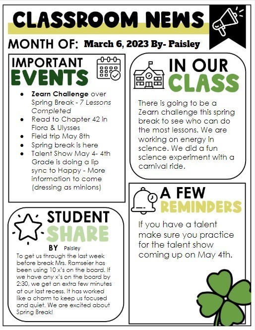 4th Grade March News By Paisley