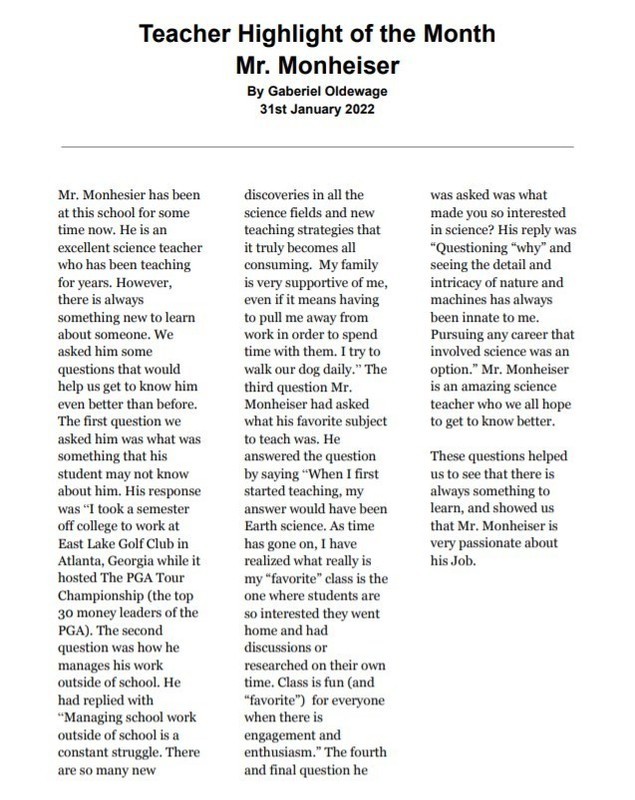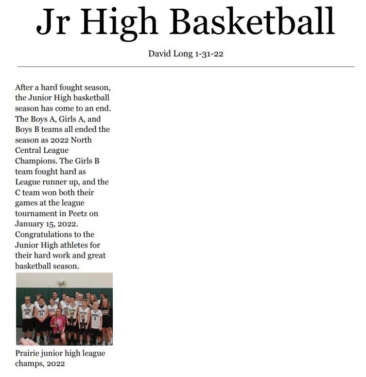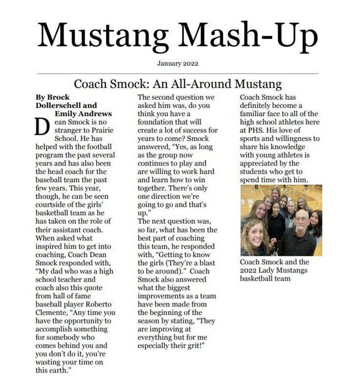 Please enjoy the following newsletter compiled by the Prairie journalism class. Contact Mrs. Dollerschell or a staff member if you'd like to see something featured in upcoming editions.