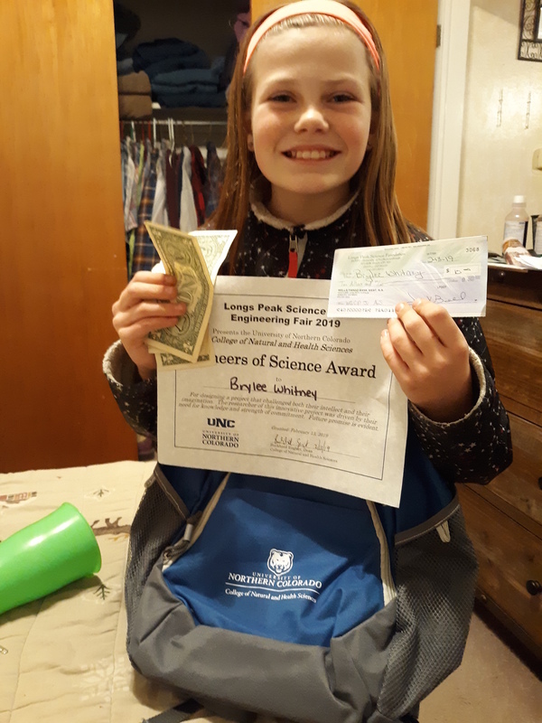 Further congratulations to Brylee Whitney for winning two awards at Regionals: The Pioneers of Science Award (this award is given for designing a project which challenged both intellect and imagination. Brylee also won the Animal Science Award. Brylee was the only 5th grader in her category – she competed against 7th and 8th graders who were also from Gifted and Talented schools….Bravo Brylee and thank you for winning those two awards for Prairie School.
